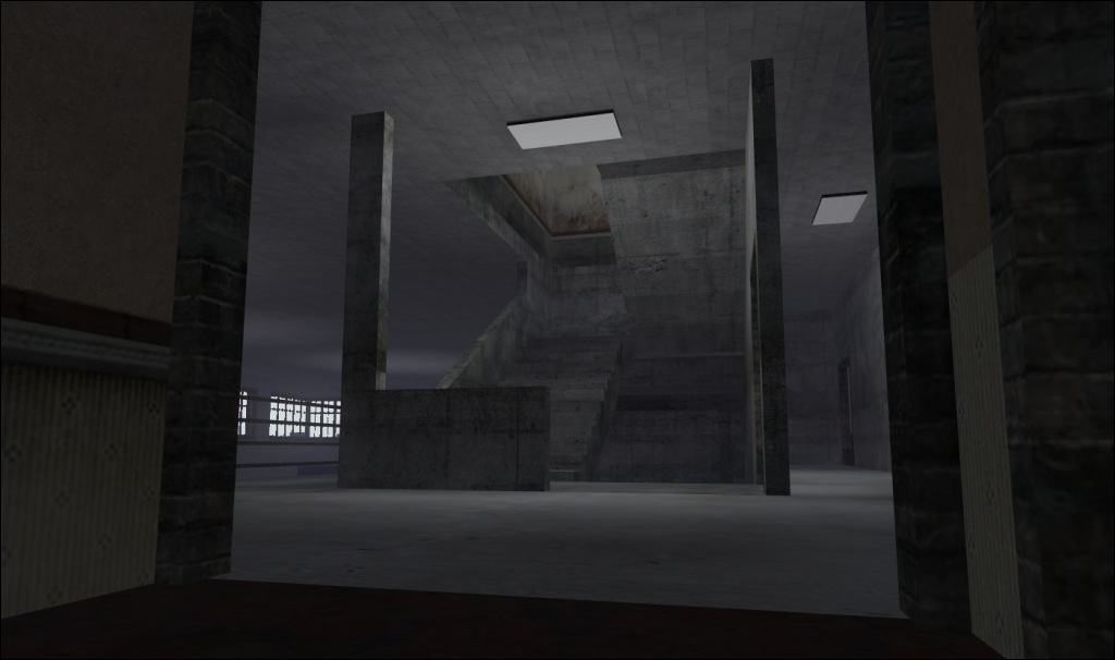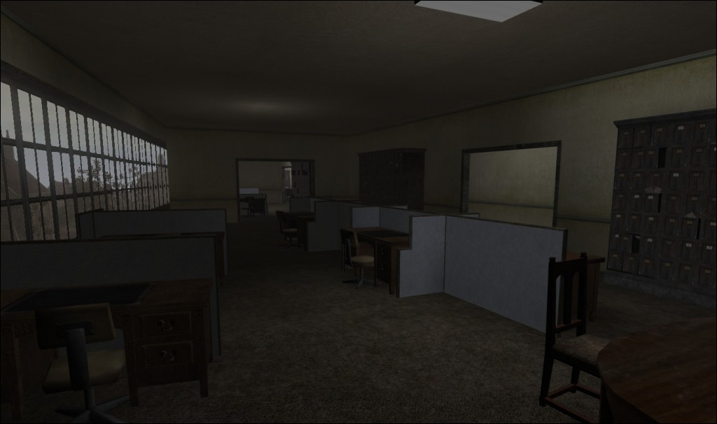 An abandoned office building with three floors and a rear parking garage, complete with tunnels, mounted guns, roof access from multiple points and additional weaponry on the roof. Offers several different styles of play, with long-range sniper points as well as lots of close-quarter action.